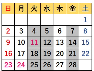 2月は基本、火、水、金曜日がお休みとなります。
